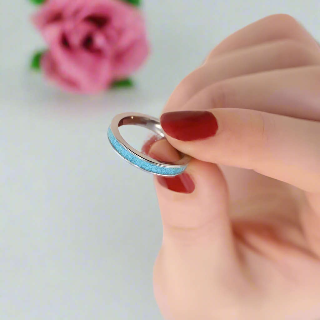 3mm Blue Turquoise Titanium Wedding Band