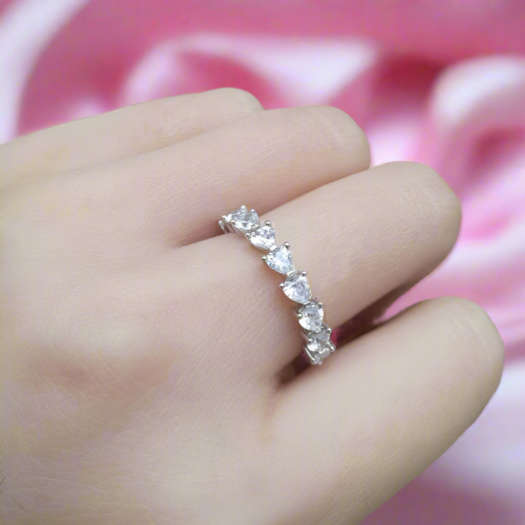This Heart Shaped Eternity Promise Ring is crafted from premium materials and meticulously handmade to deliver outstanding brilliance, radiating the captivating sparkle of a genuine diamond.