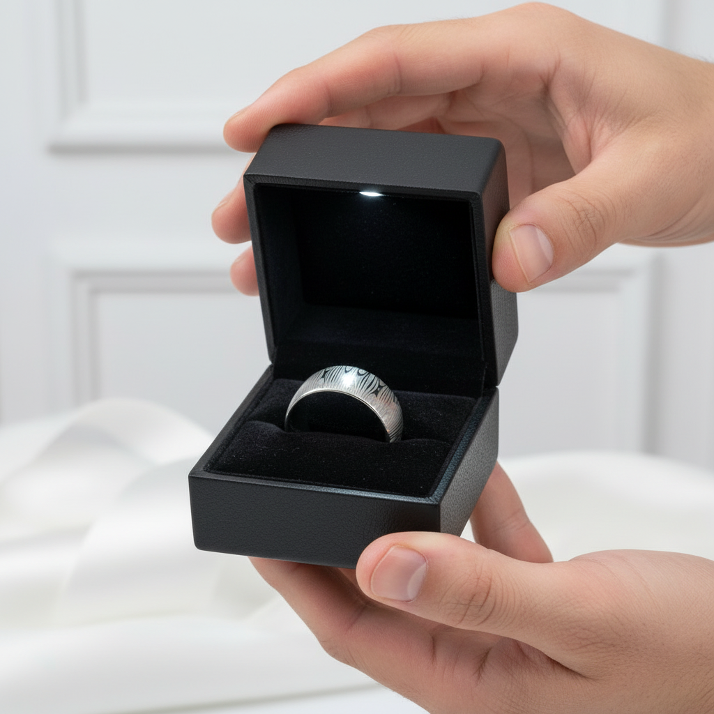 Laser Engraving Damascus Pattern Dome Band