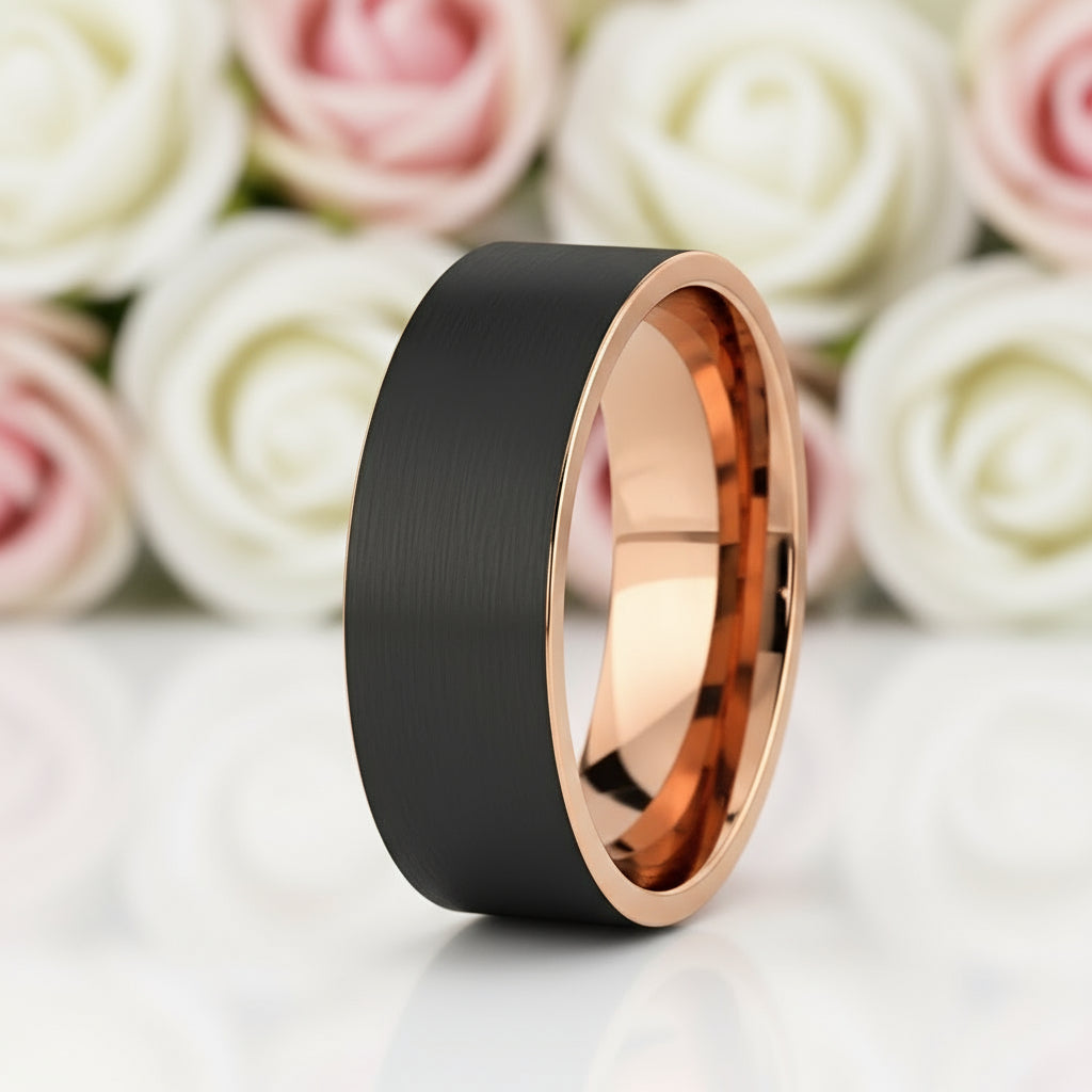Matte Black & Rose Gold Finish Tungsten Carbide Wedding Band