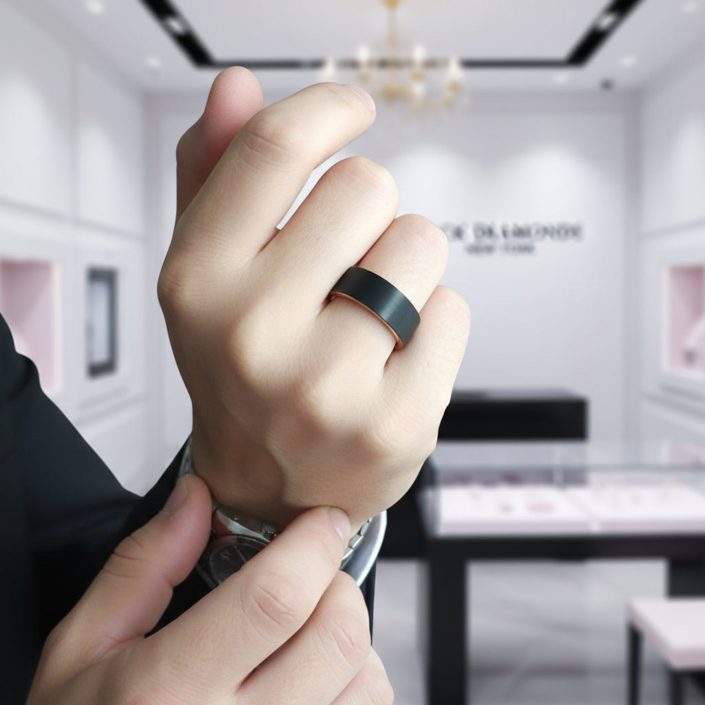 Experience timeless elegance with this Matte Black and Rose Gold Tungsten Carbide Wedding Band. Crafted by hand for enduring strength, it features a durable tungsten construction, a smooth round shape, an 8mm surface width, and a comfort-fit interior for all-day wear.
