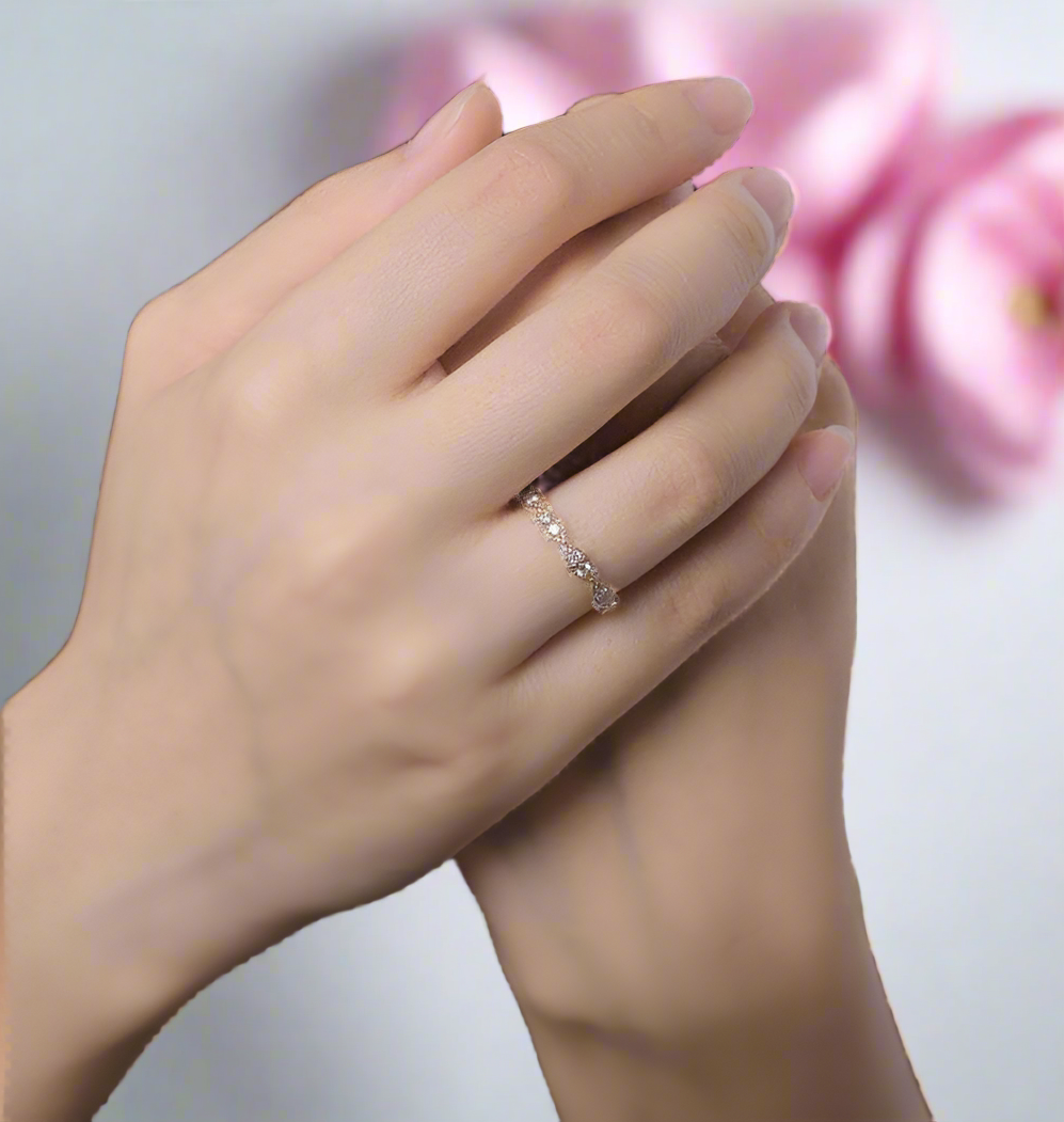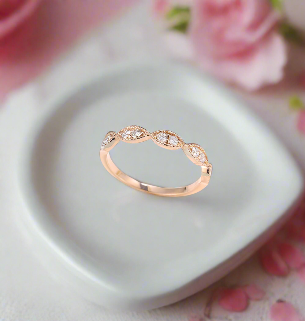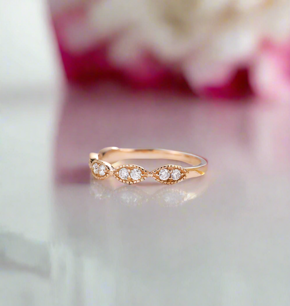 Solid 14k Rose Gold Diamond Milgrain Stackable Wedding Band