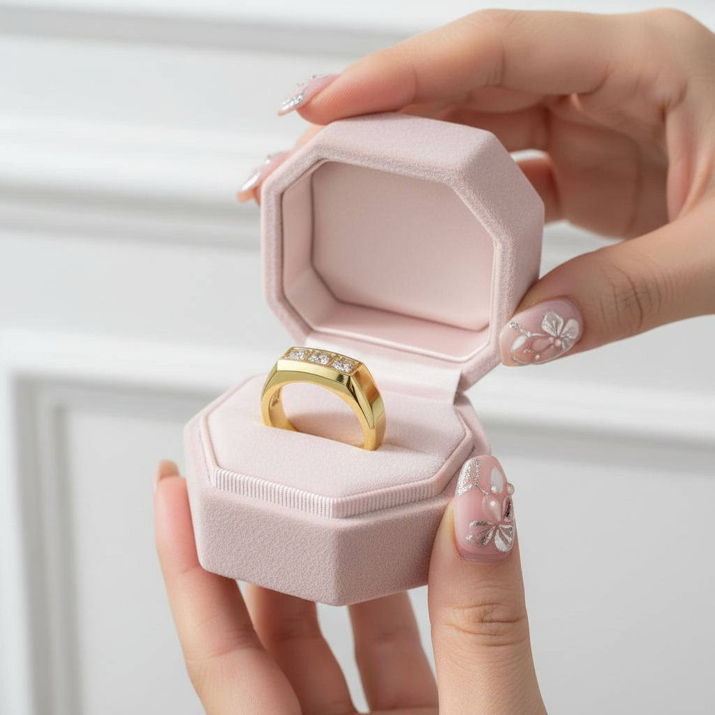 Mark your marriage with a three-stone diamond band that refuses to blend in. Constructed from responsibly sourced, high-grade materials designed for lasting durability, this piece sidesteps the tired designs and inflated costs of typical wedding bands. A ring as genuine as your commitment.