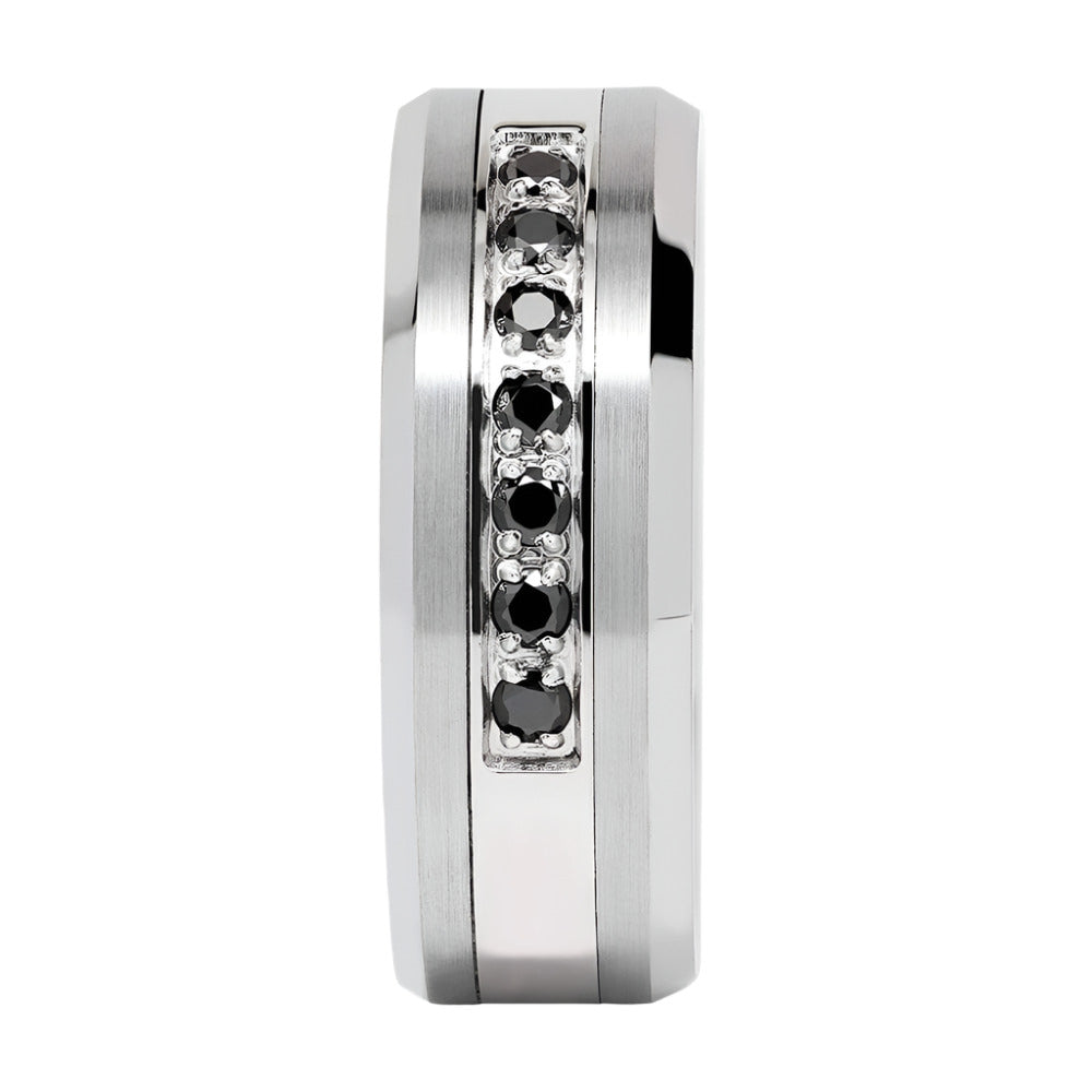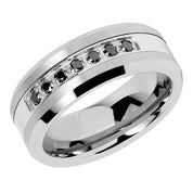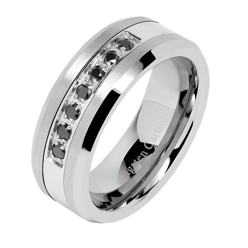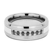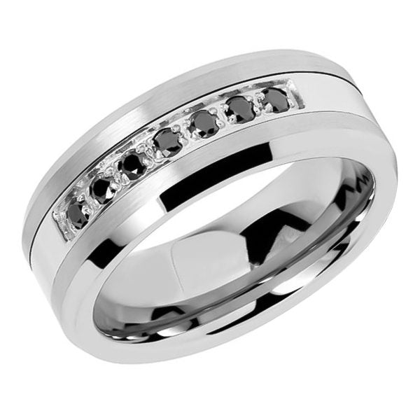 8mm Men's Tungsten Carbide Wedding Band With Black Diamond