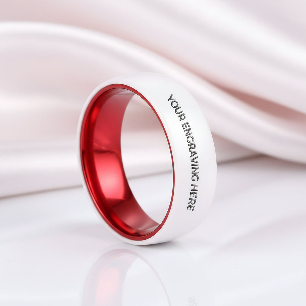 Enjoy a special connection with this exquisite 8mm ceramic men's wedding band, designed to last a lifetime. Featuring a unique inscription on the outside of the band, this high quality, luxury ring is perfect for celebrating the bond of marriage.