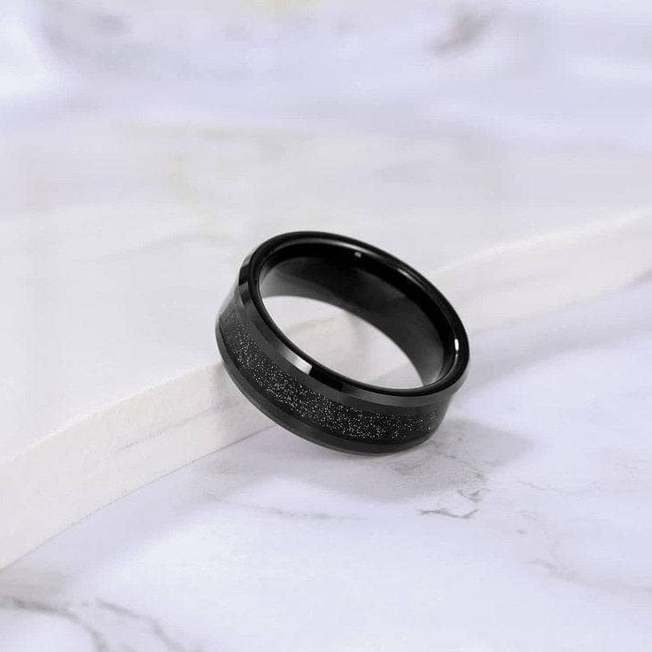 Ready to tie the knot? Make sure you're doing it in style with our Men's Tungsten Carbide Wedding Band with Sandstone Inlay! This sleek and rugged ring features a cool combination of black tungsten and sandstone inlay, as well as a beveled edge, polished inner shank, and smooth comfort fit. It's the perfect choice for any guy who wants a wedding band that's both handsome and sturdy. And thanks to Black Diamonds New York, you can get all that style, quality, and comfort at an affordable price. So go ahead, say "I do" to this amazing ring today!