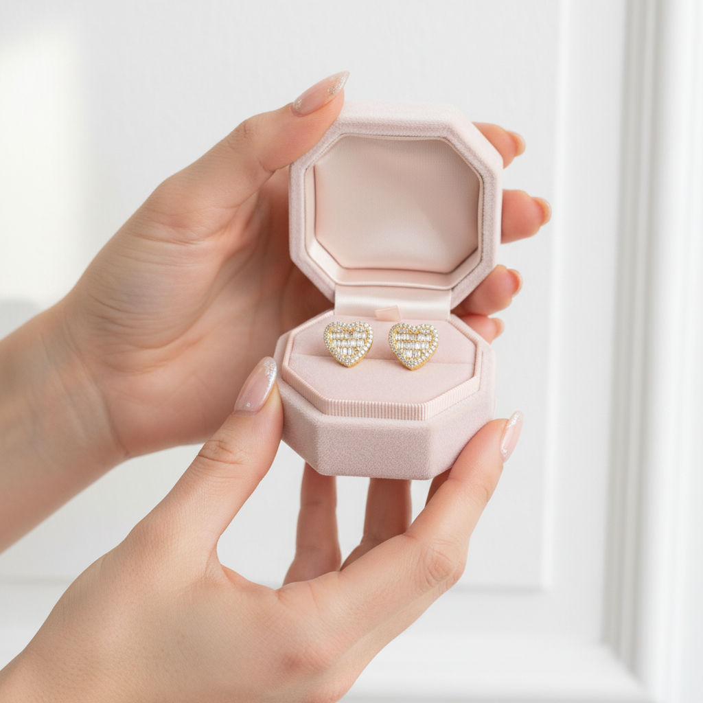 Classic 18k Gold Diamond Heart Shaped Earrings