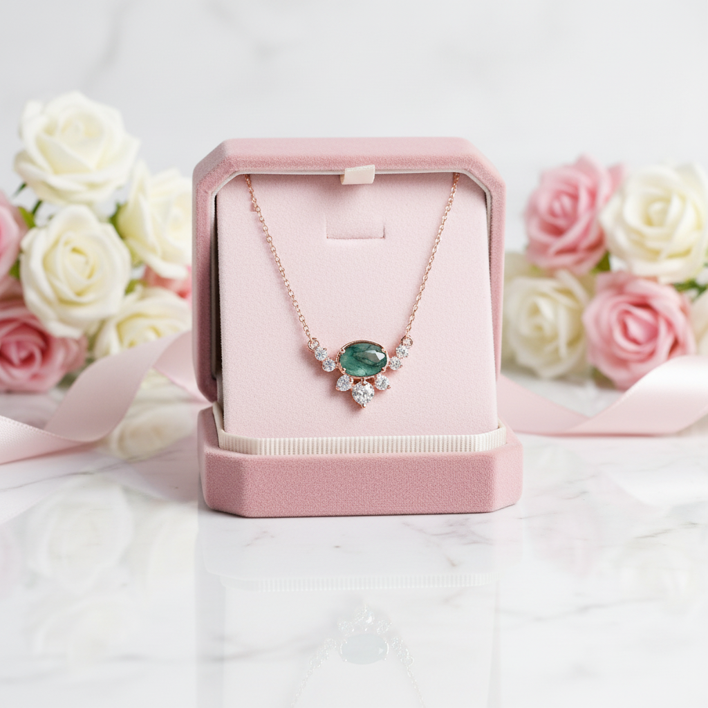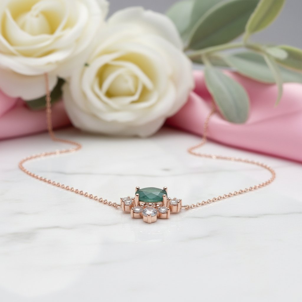 0.79 ctw Oval Cut Natural Moss Agate Necklace