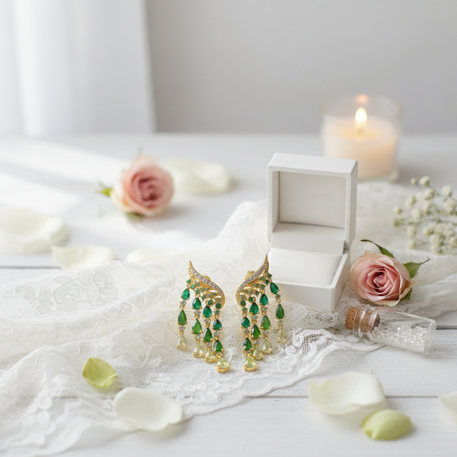 Looking for something fun and something beautiful? We got you! Inspired by the beauty of our nature incorporating flowers, leaves and natural gemstones meticulously handcrafted to match your unique style. This beautiful set of earrings will turn heads and will surely stand out from the usual designs. Made 100% uniquely using the highest quality materials and natural stones. Don’t compromise on quality, sustainability and individuality!
