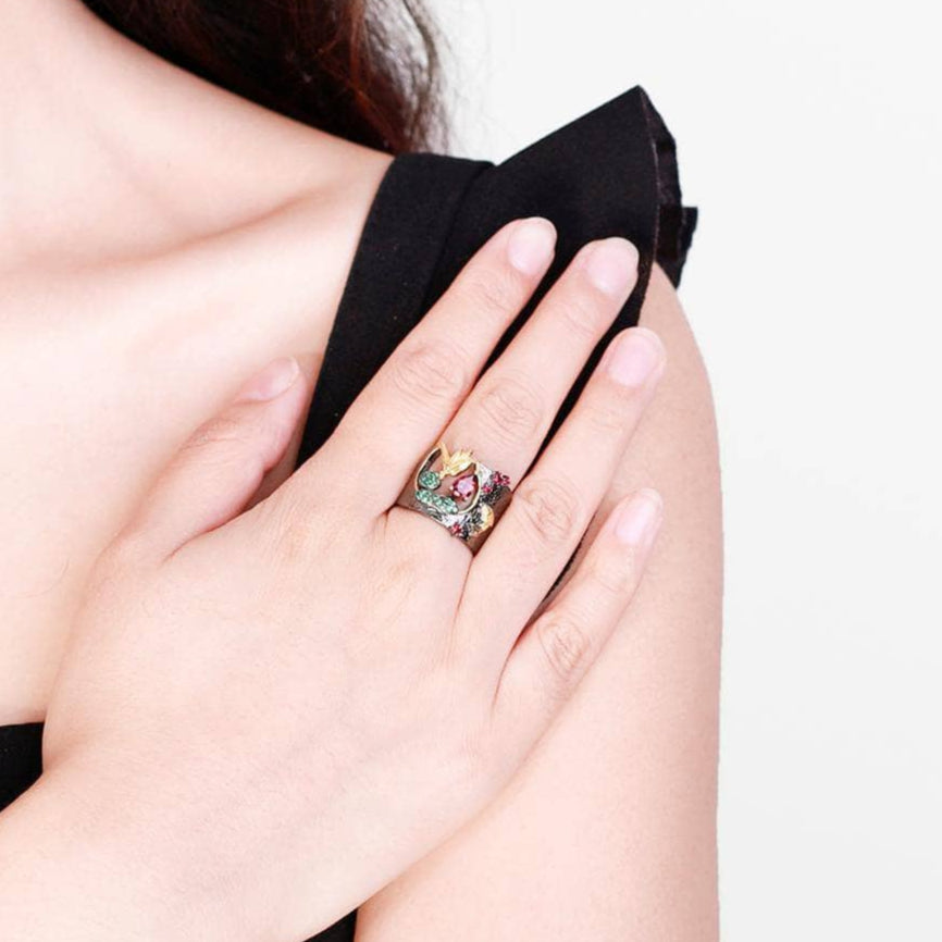Discover the elegance of our handcrafted bird rings, each featuring a 0.52Ct natural Rhodolite Garnet. This exquisite piece combines artisanal craftsmanship with the rich, vibrant hues of the garnet, creating a refined accessory that enhances any sophisticated ensemble.