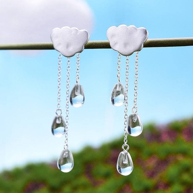 Ethnic Crystal Ethnic Cloud Long Tassel Drop Earrings