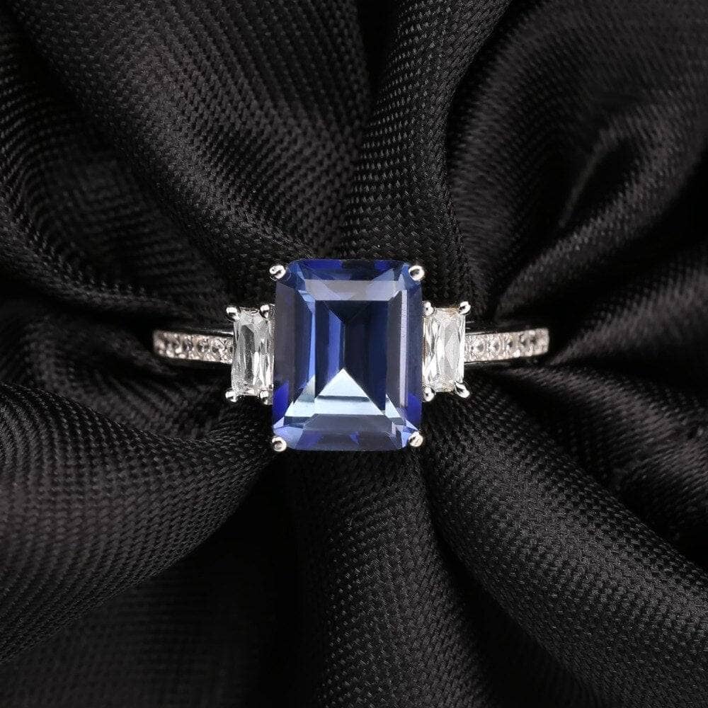 Indulge in luxury with our Natural Blue Mystic Quartz Gemstone Engagement Ring by Black Diamonds New York. The emerald cut blue Quartz stone is a stunning centerpiece that will capture the light and mesmerize onlookers. This gorgeous ring boasts high quality craftsmanship and an affordable price tag, making it a must-have for any bride-to-be who desires a sparkly yet classic accessory.