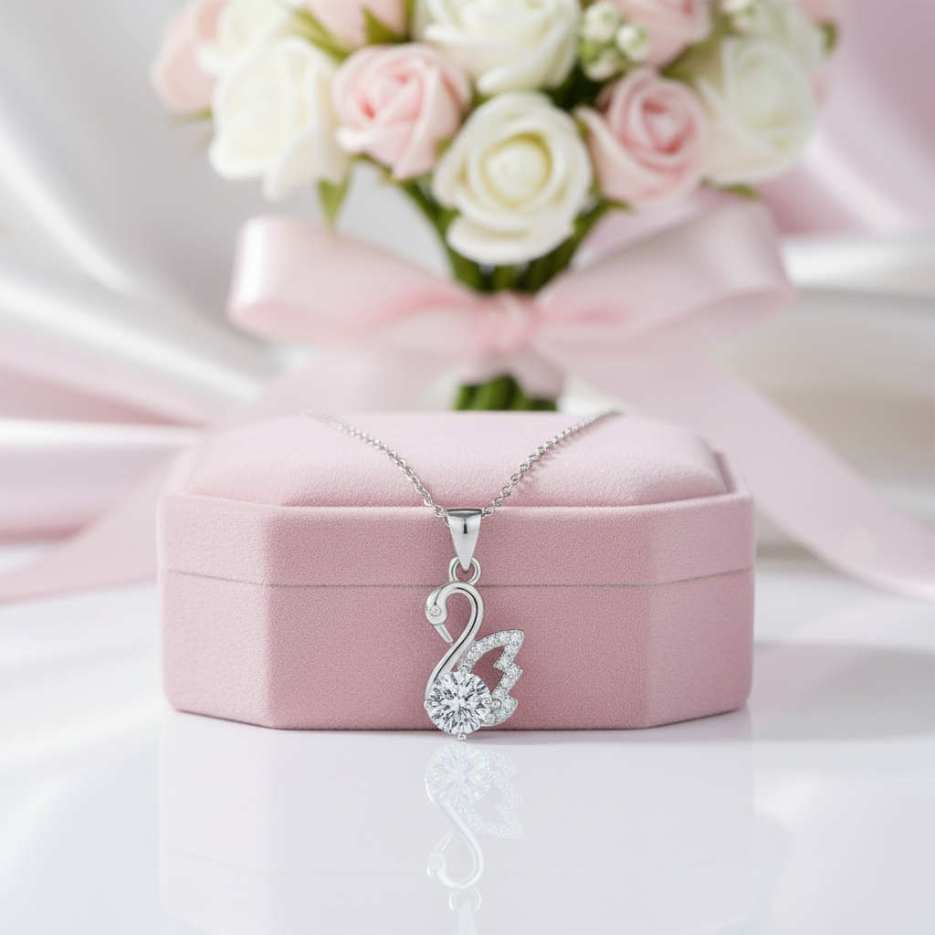 Look and feel like a celebrity with this beautiful 1.0 Ct Round Cut Certified Moissanite Swan Necklace. Its round Certified Moissanite stones and elegant Swan Design make it perfect for any occasion. Show off your impeccable style with this timeless necklace.