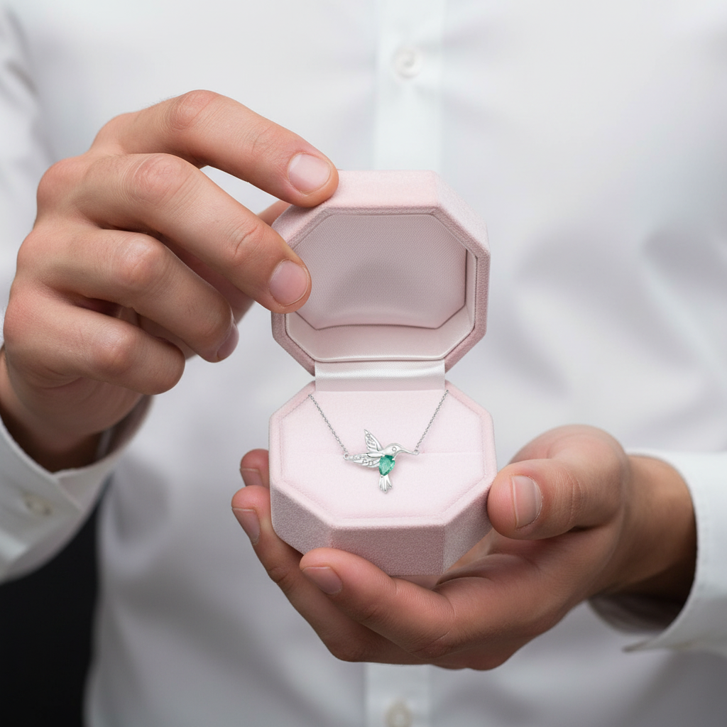 Enhance your jewelry collection with the Mint Green Diamond Alternative Hummingbird Pendant Necklace from Black Diamonds New York. This elegant piece draws inspiration from nature, featuring a captivating hummingbird motif. Expertly crafted from 925 Sterling Silver and embellished with a brilliant Diamond Alternative, it showcases exceptional quality and fine craftsmanship. The polished link chain adds a luminous finish, making it a refined accessory that effortlessly elevates any outfit. Discover affordable sophistication and timeless beauty with this exquisite pendant necklace.