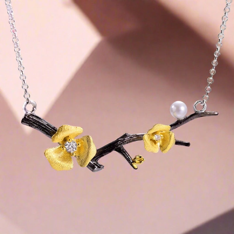 Discover pure elegance and uniqueness with the Plum Blossom Flower Necklace! Adorned with delicate handcrafted flowers, leaves, and authentic gemstones, it effortlessly complements your personal style. Made with premium materials and entirely one-of-a-kind, this necklace radiates superiority, sustainability, and individuality. Embrace your distinctive taste and express your love for nature with this extraordinary accessory!