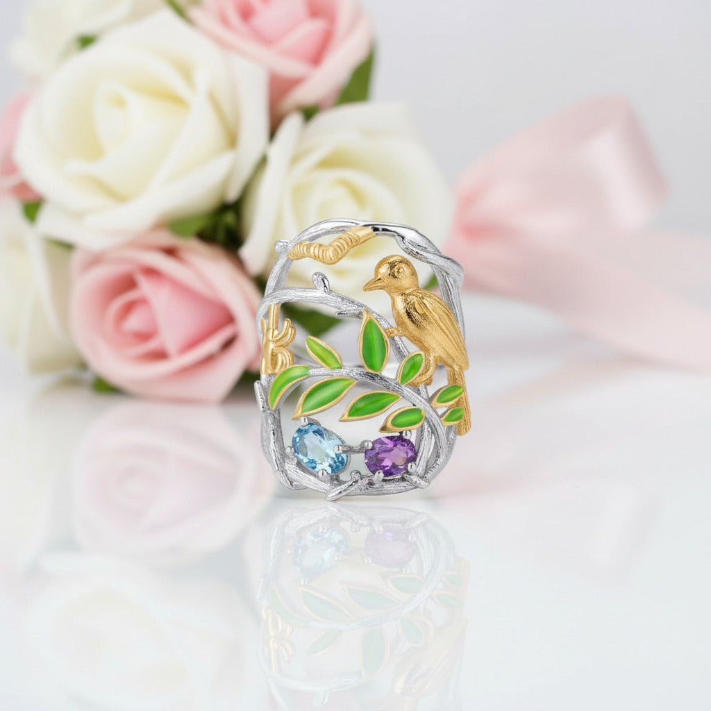 Looking for something fun and something beautiful? We got you! Inspired by the beauty of our nature incorporating flowers, leaves and natural gemstones meticulously handcrafted to match your unique style. This beautiful ring will turn heads and will surely stand out from the usual designs. Made 100% uniquely using the highest quality materials and natural stones. Don’t compromise on quality, sustainability and individuality!