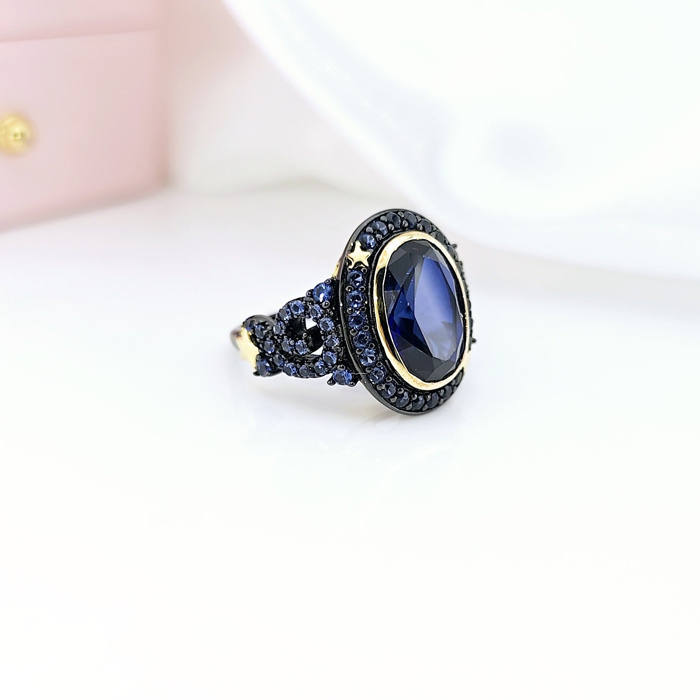 Indulge in the captivating Vintage Natural Gemstone Statement Art Deco Engagement Ring. Let us whisk you away on a journey of enchantment with a touch of the starry night. Meticulously crafted to complement your one-of-a-kind taste, this ring exudes a magical charm. Its exquisite design and premium materials guarantee to capture attention and stand out amongst the ordinary. Embrace the beauty of nature with our uniquely crafted, sustainable and high-quality gemstone ring. Elevate your style and embrace your individuality today!