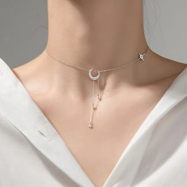 Gorgeous Moon Tassel Star Pendant Short Necklace