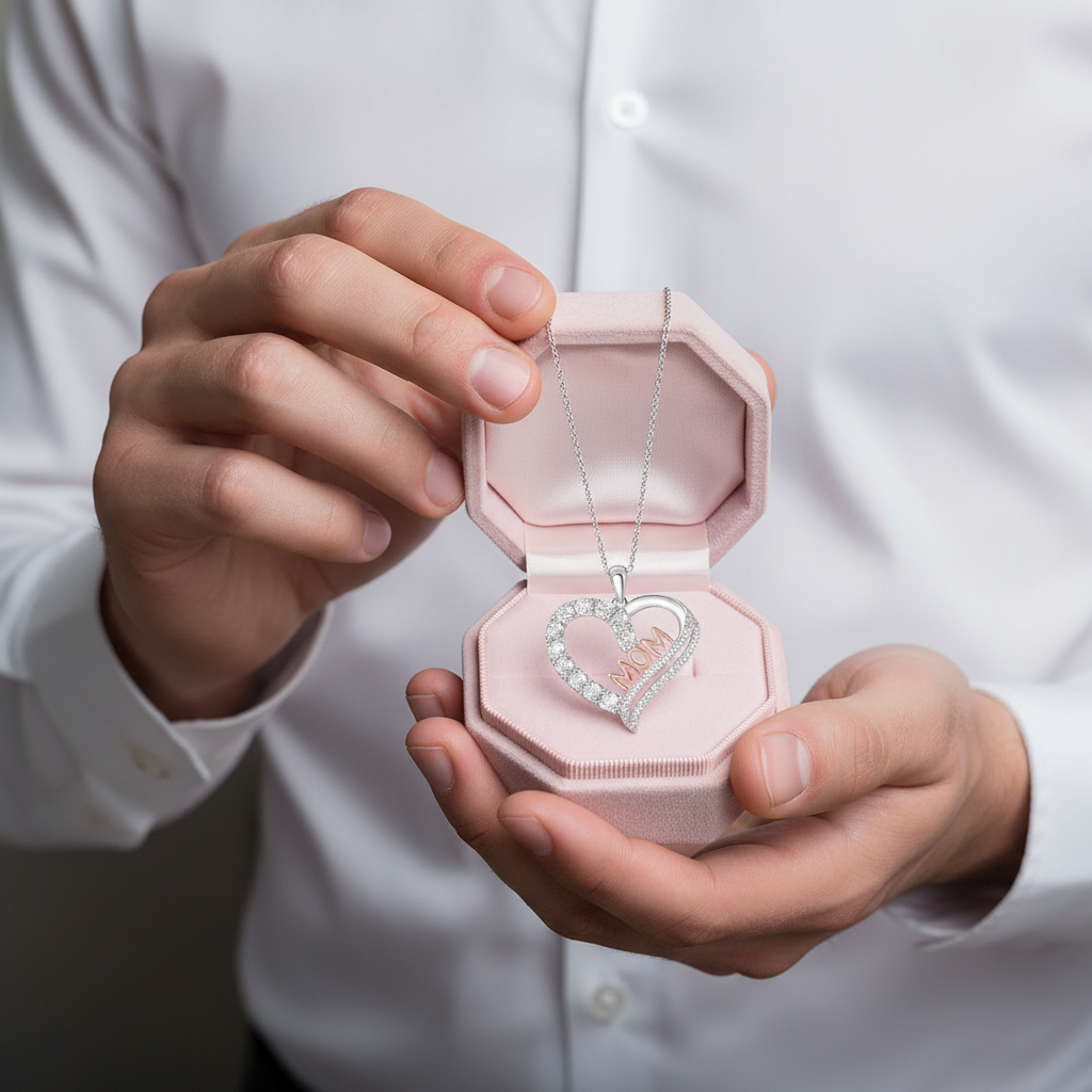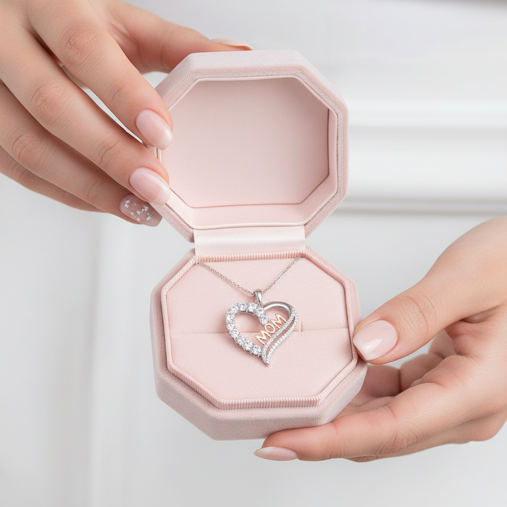 Custom Heart Necklace with Clear Diamond Paved Pendant