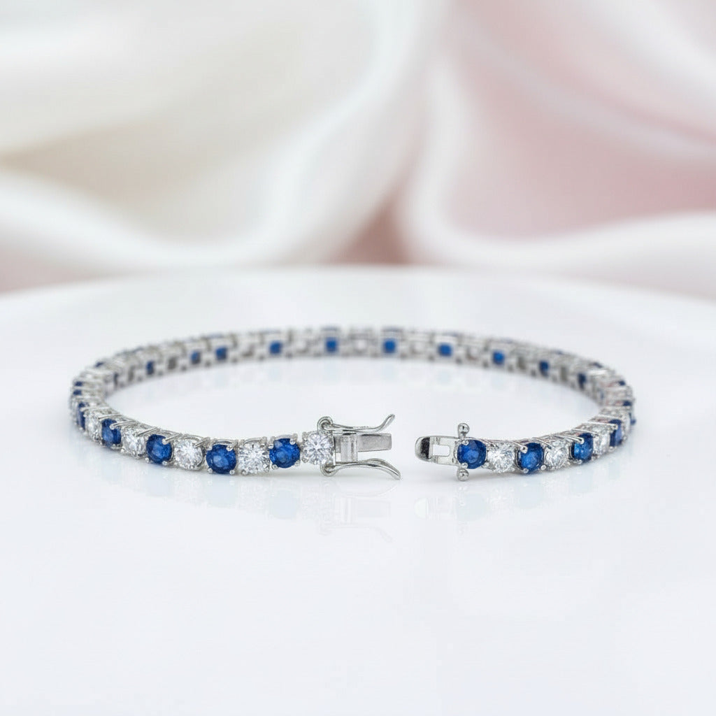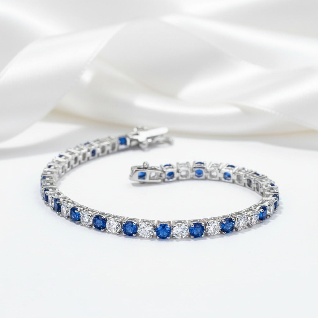 Elegant Blue Round Cut Bracelet In Sterling Silver
