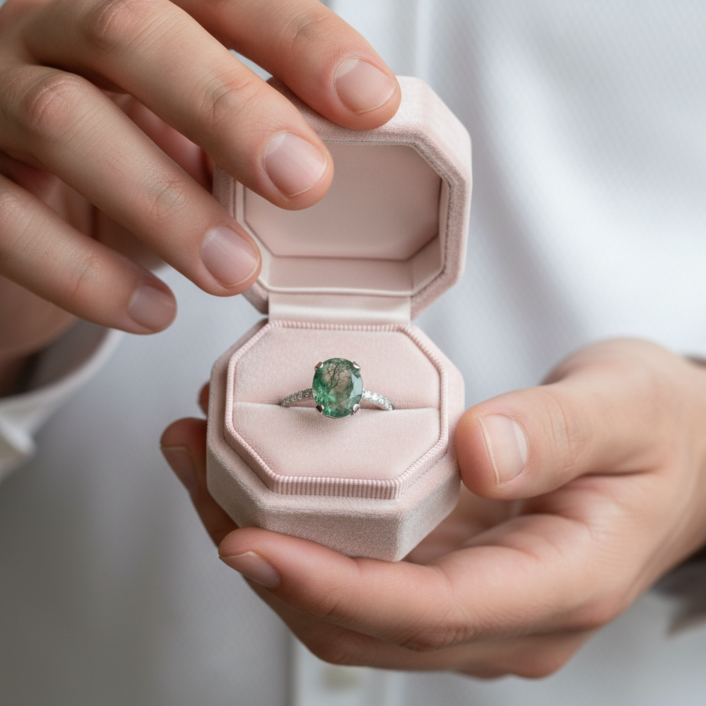 Moss Agate Engagement Ring