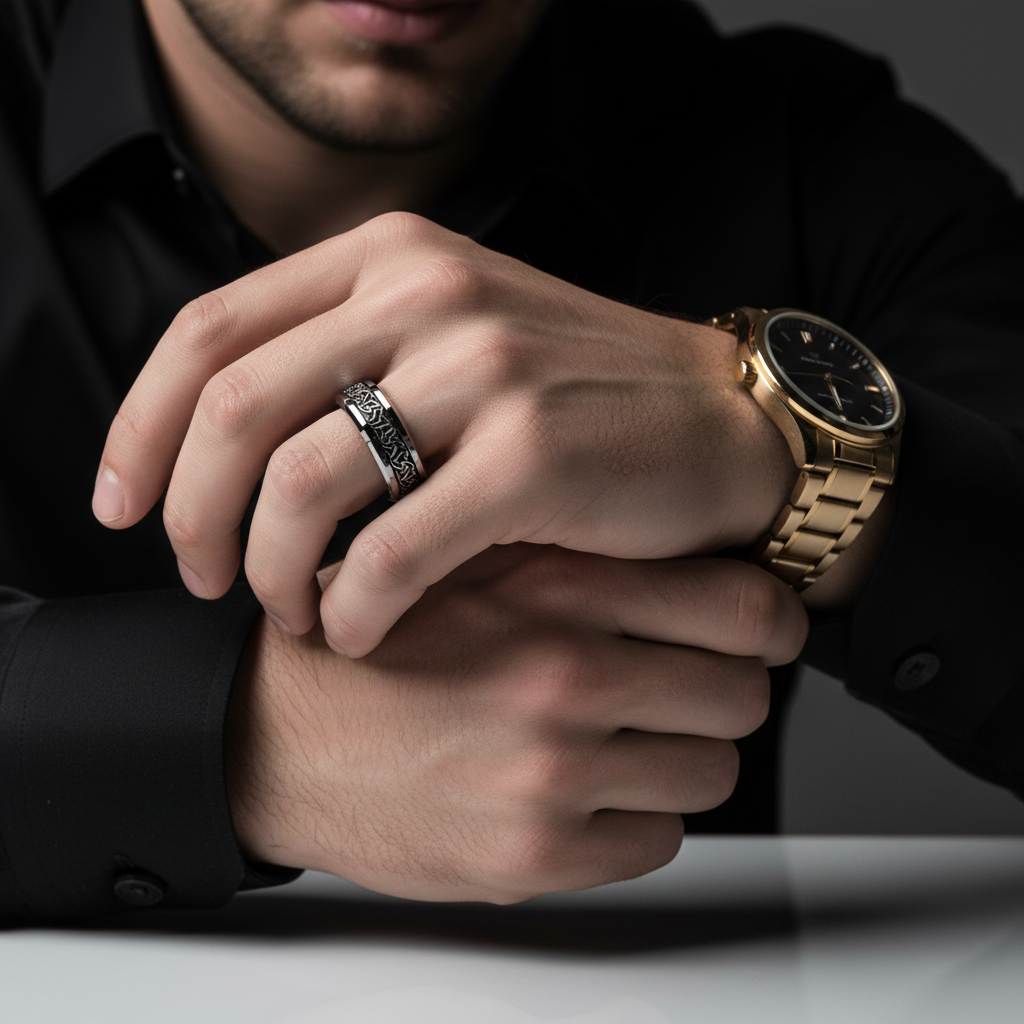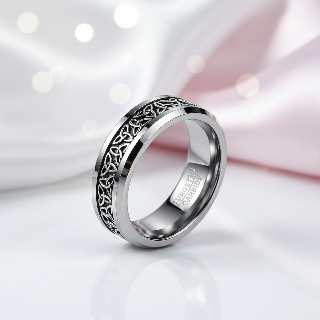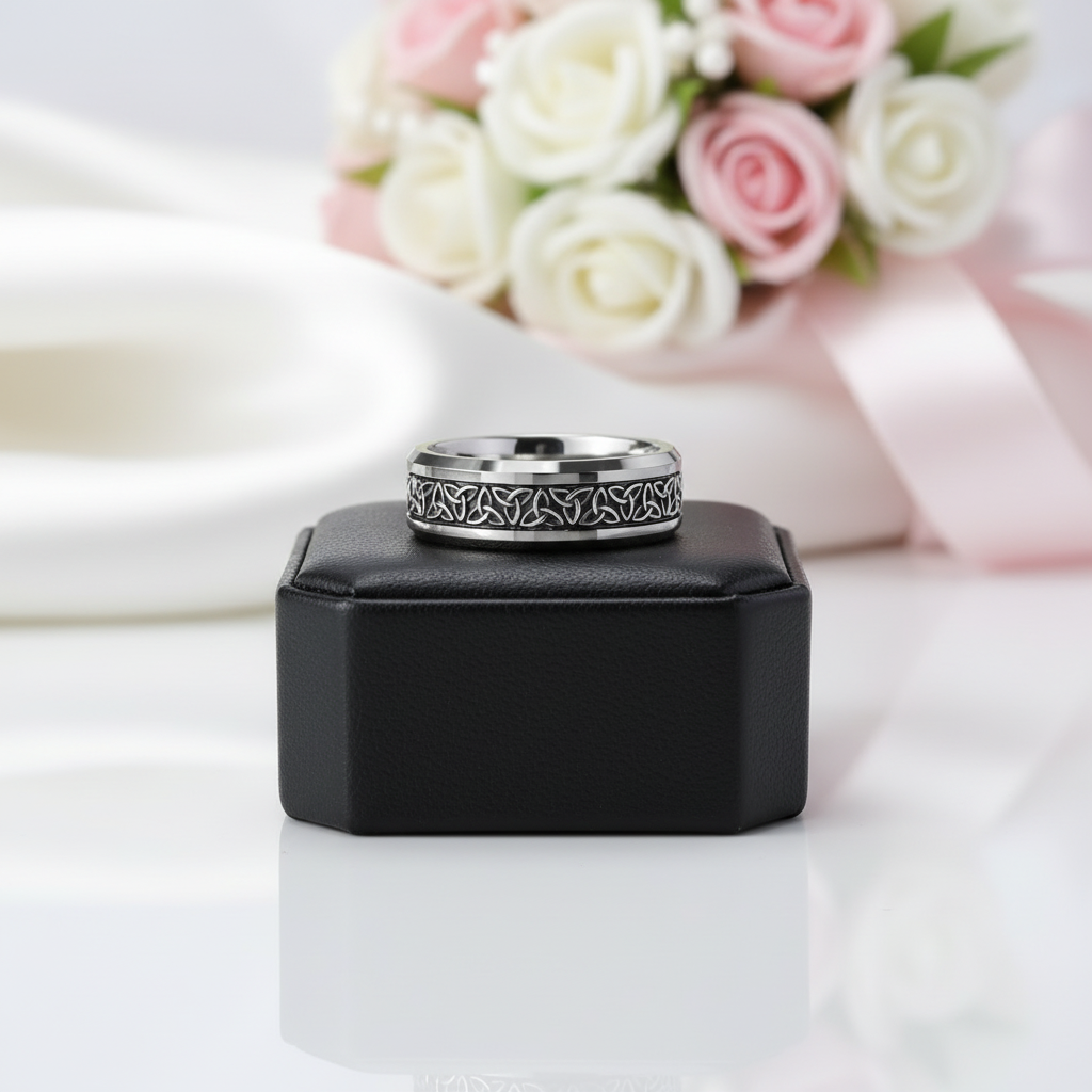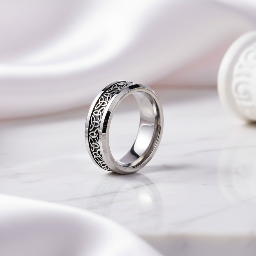 Rooted in ancient Celtic tradition, this men's ring band features the iconic triquetra knot—a symbol of unity and eternal connection. Crafted with precision, the interlocking design creates visual depth and movement around the band, making it a meaningful choice for those drawn to heritage and symbolism. Whether worn as a statement piece or layered with other rings, this band brings timeless Celtic artistry to modern style. Perfect for everyday wear or special occasions, it's a versatile addition to any collection.
