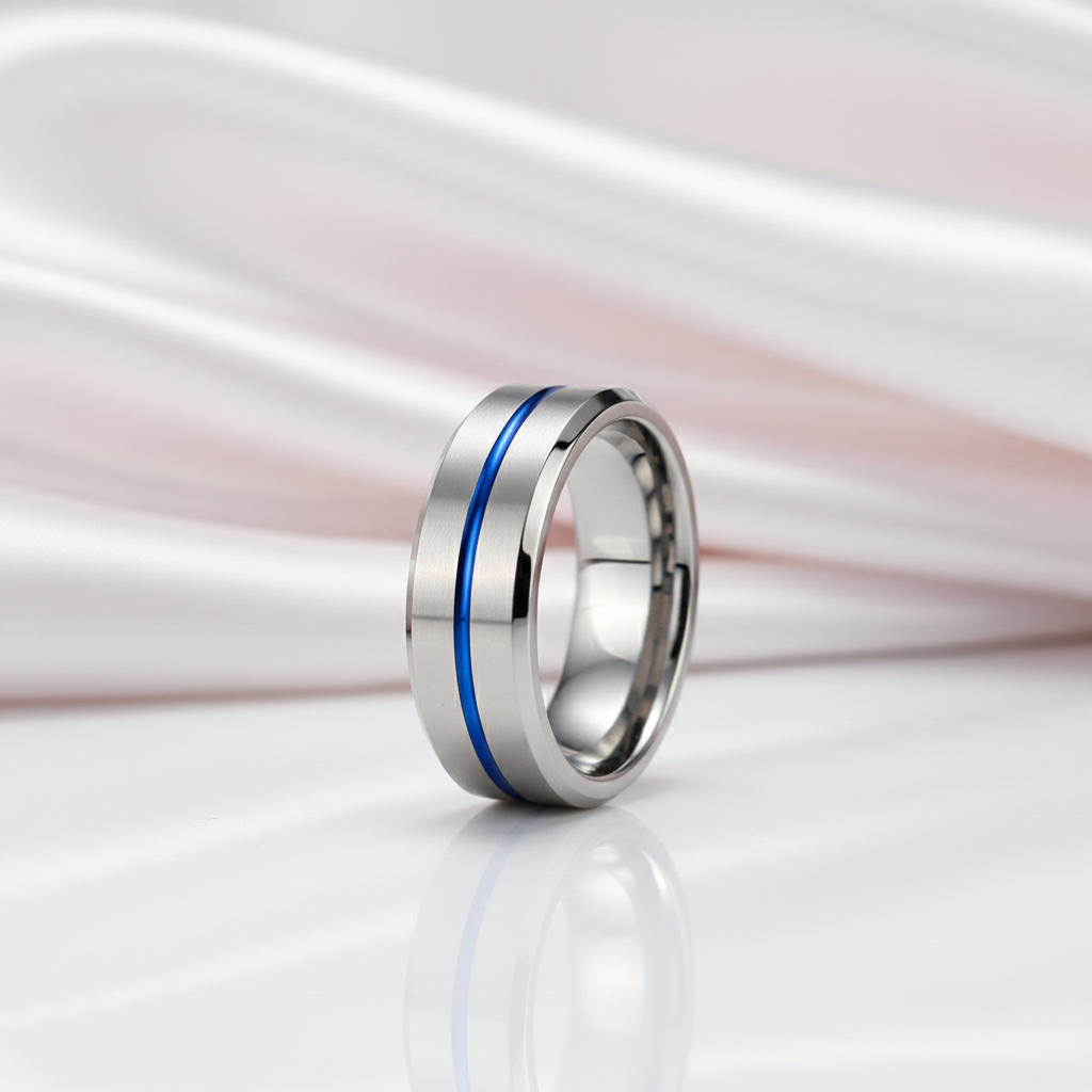 Crafted from premium tungsten carbide, this 8mm wedding band combines timeless elegance with meaningful symbolism through its thin blue line design. Built to withstand everyday wear, the metal's natural luster delivers a sophisticated shine that rivals precious stones. Perfect for those seeking a durable, striking ring that honors service, sacrifice, and the bonds that matter most.