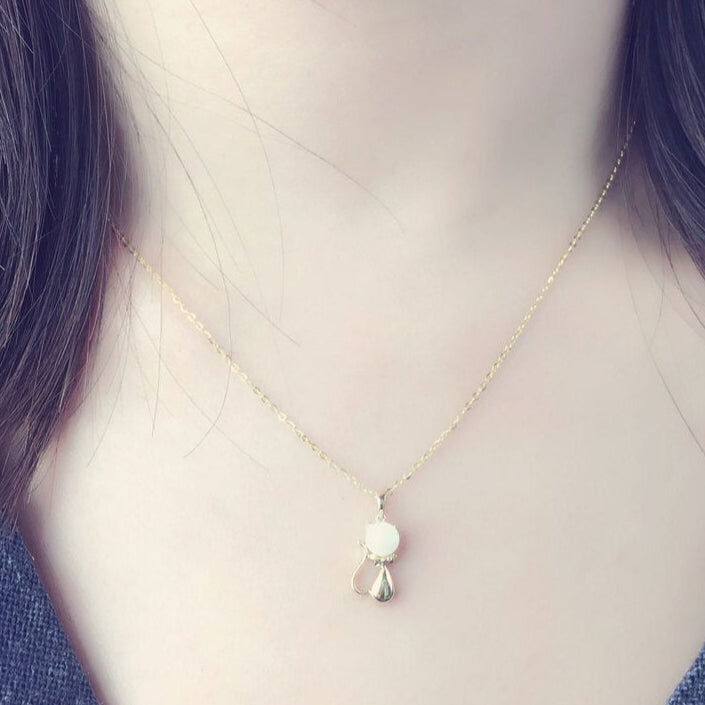 18k Yellow Gold Freshwater Pearl Mouse Pendant Necklace