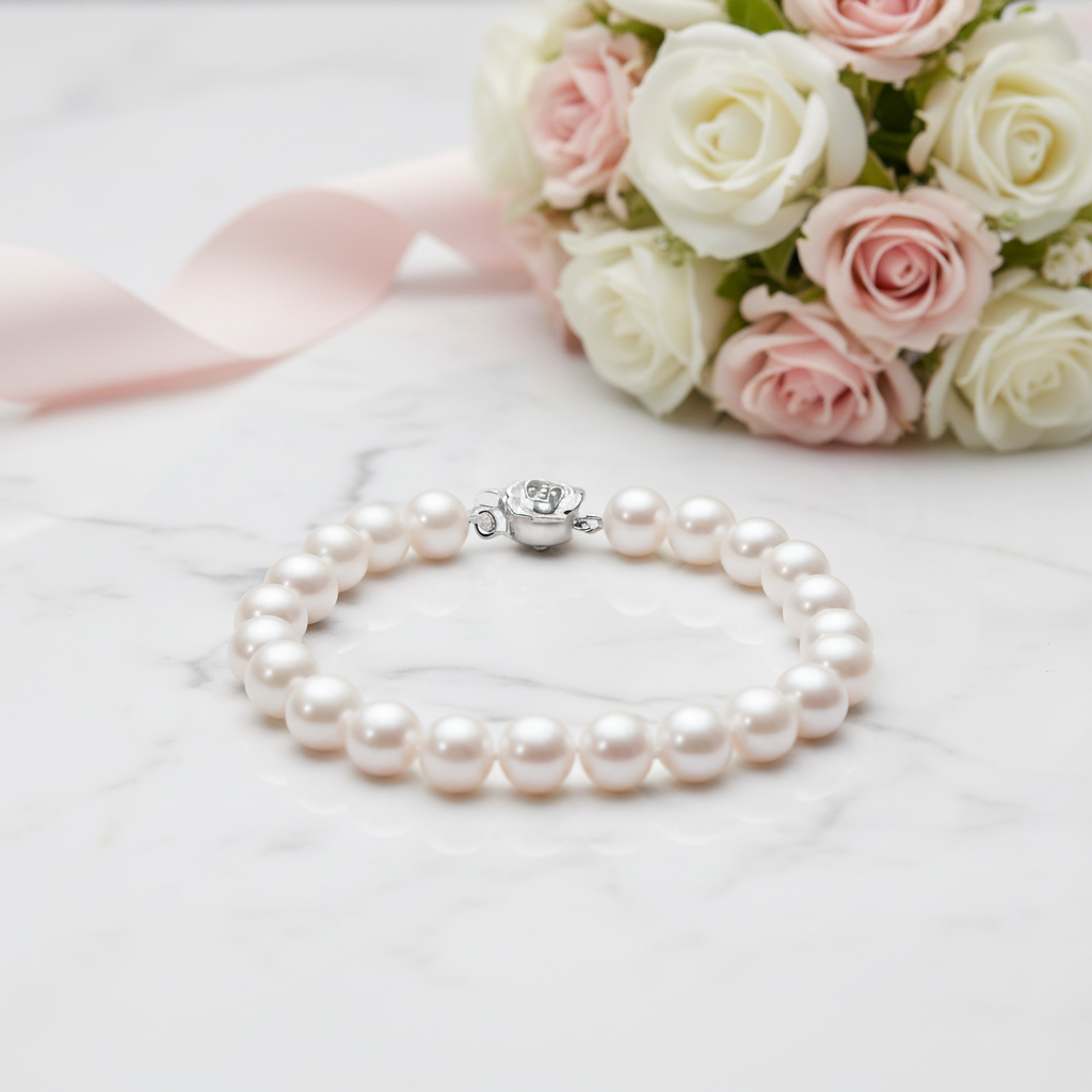 Freshwater Pearl Flower Charm Bracelet