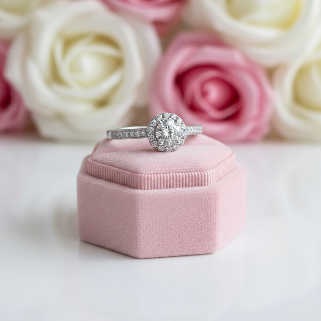 0.5Ct VVS1 Diamond Halo Engagement Ring