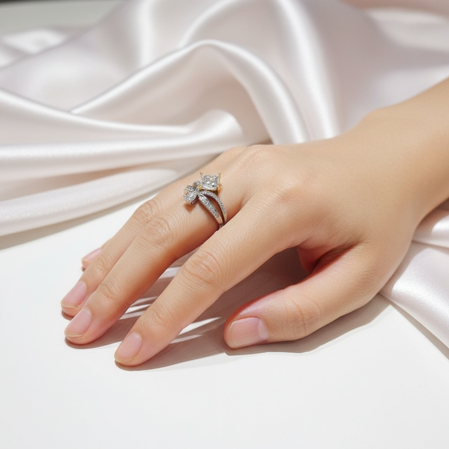 1ct Princess Cut Diamond Cute Water Drop Crown Engagement Ring