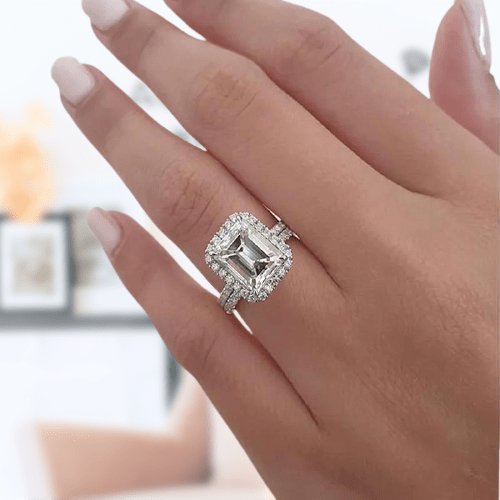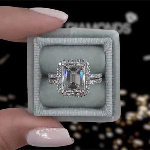 Halo Emerald Cut Simulated Diamonds Wedding Ring Set
