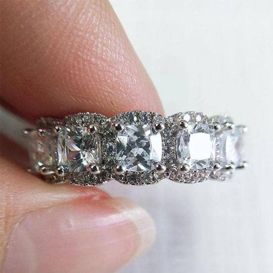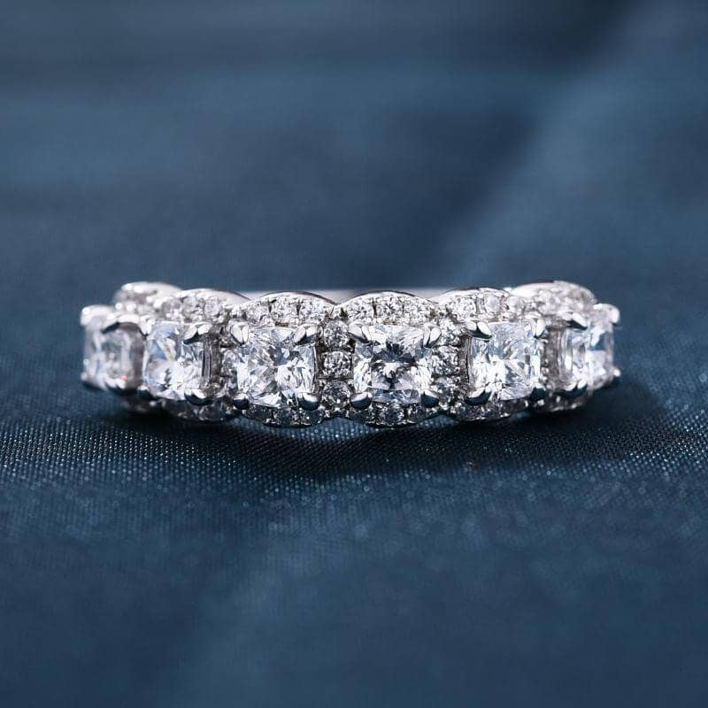 Halo Six Cushion Cut Diamond Wedding Band Ring