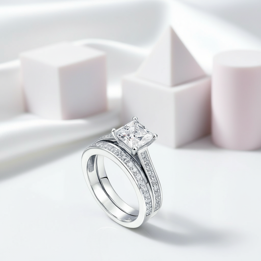 1.5 Carat Princess Cut Diamond 2-Pcs Wedding Engagement Ring Set.
