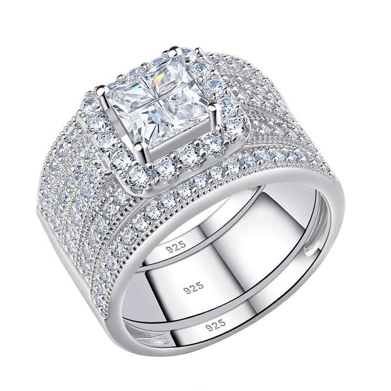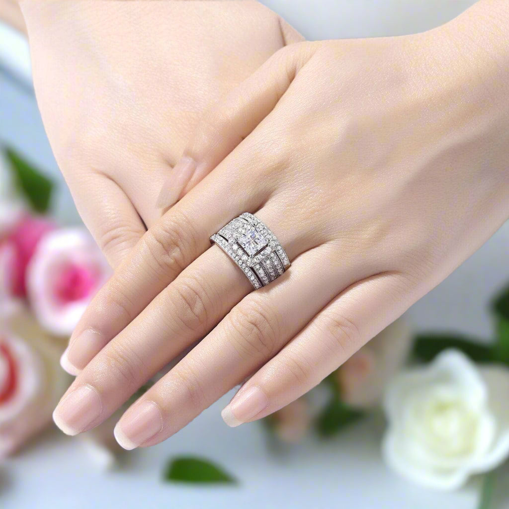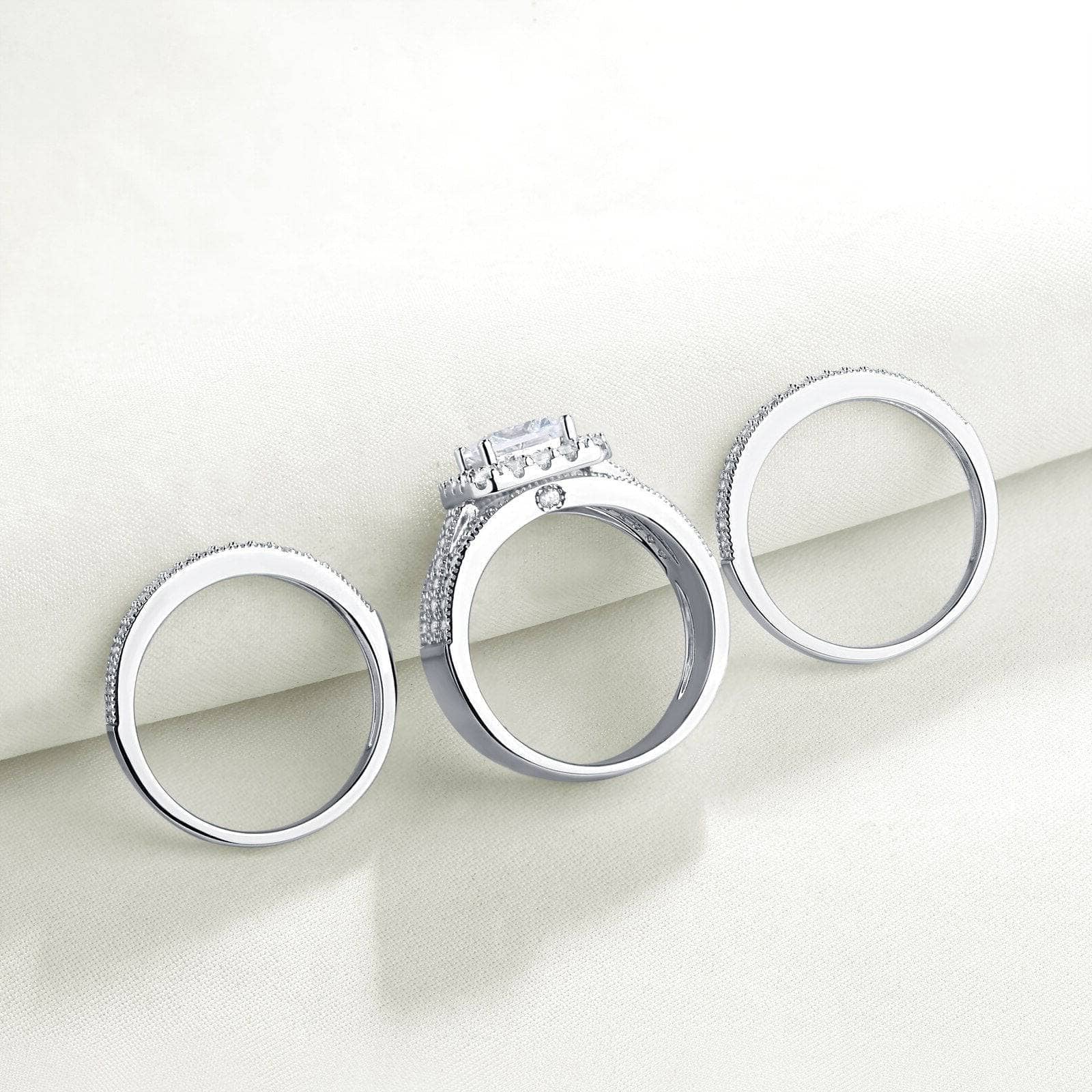 3Pcs Princess Cut Diamond Engagement Ring Set