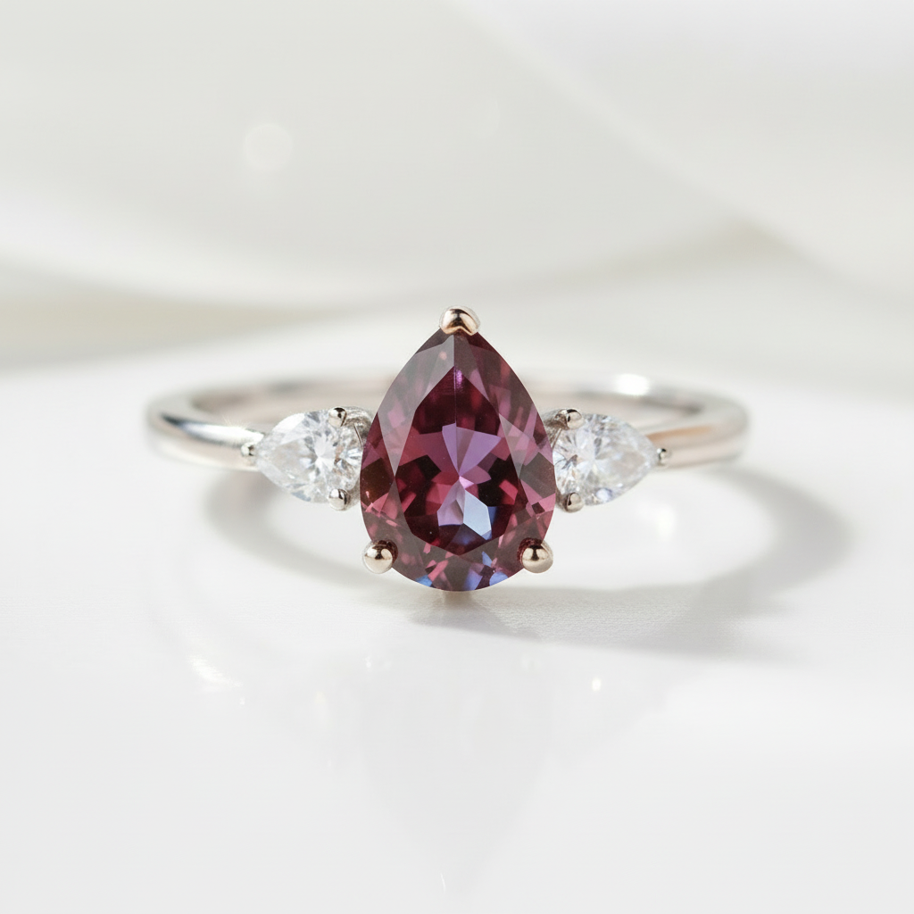Pear Cut Alexandrite with Diamond Engagement Ring