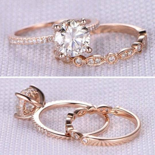 Rose Gold 2.0ct Round Cut Art Deco Bridal Set