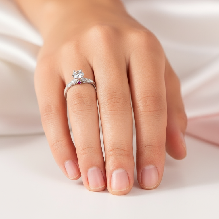 Round Cut 18k Diamond with Ruby Antique Design Engagement Ring