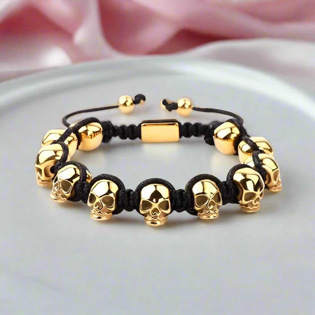 Unisex Skull Beads Gothic Bracelet with Braided Wrap