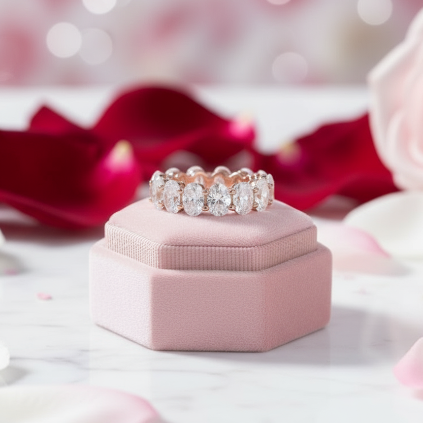 This classic oval cut wedding band showcases precision-cut simulated diamonds with the radiance of natural stones at an accessible price. Engineered for durability and daily comfort, it's an ideal choice for engagements, anniversaries, and meaningful celebrations. Protected by a one-year warranty and 30-day guarantee.