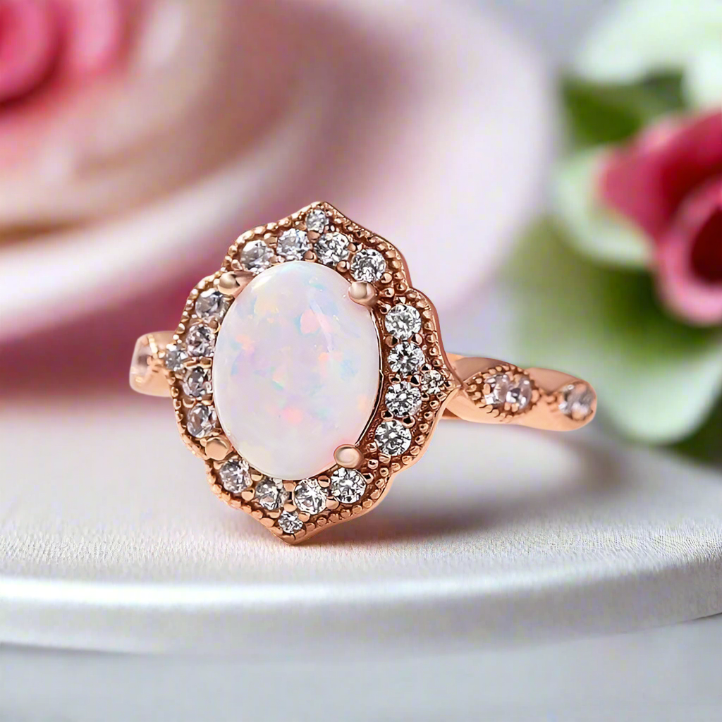 Rose Gold Oval Cut Moonstone Engagement Ring