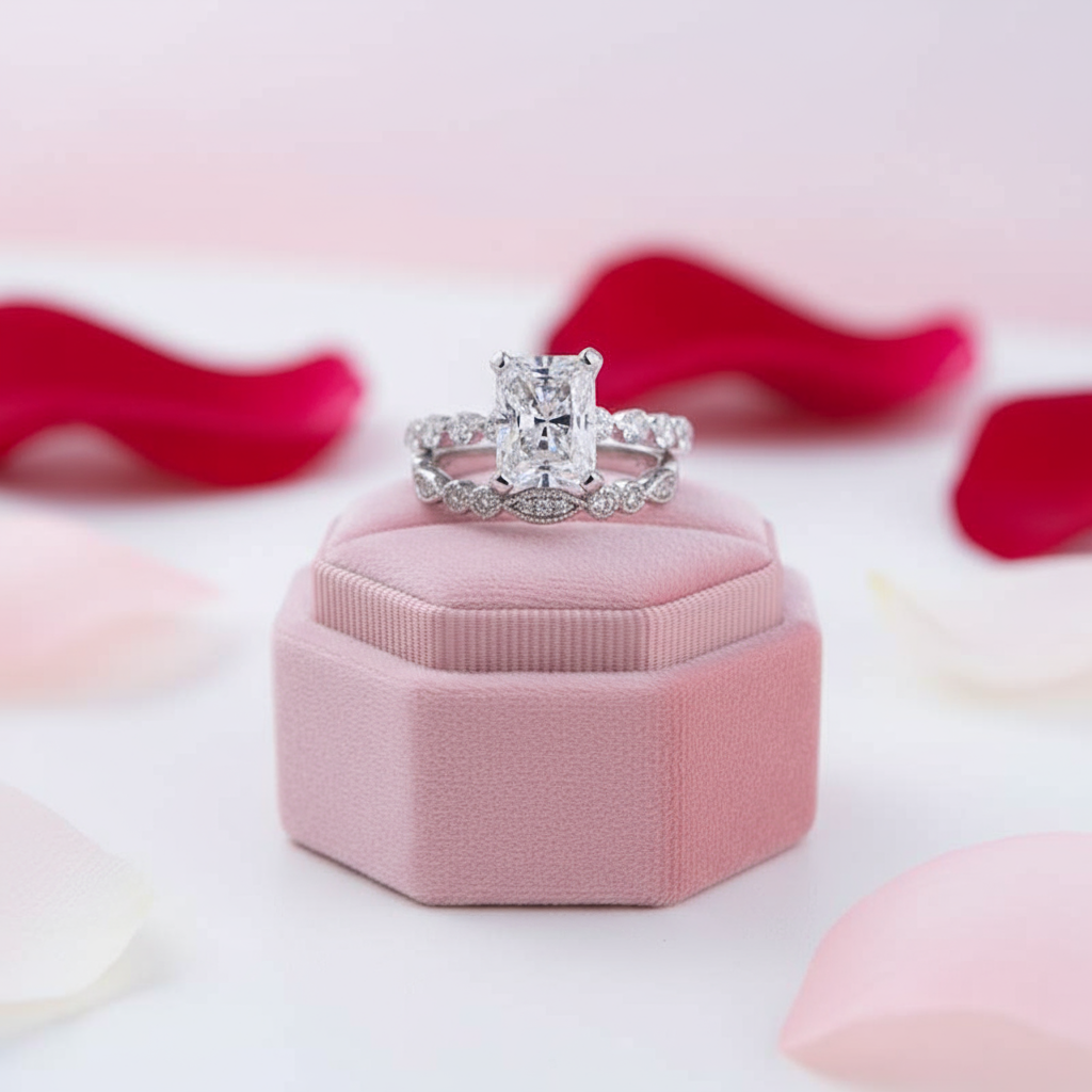Vintage Art Deco Radiant Cut Wedding Ring Set