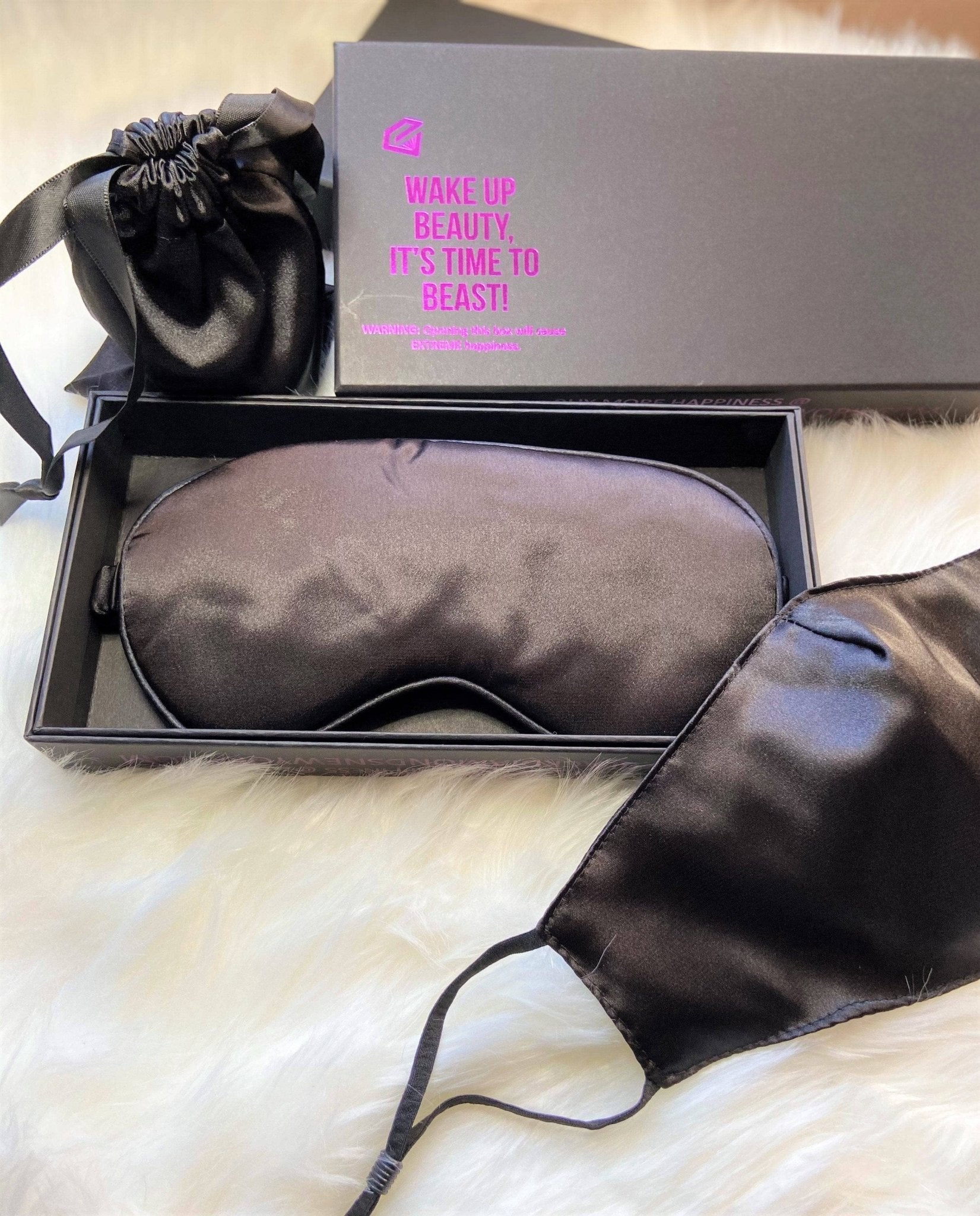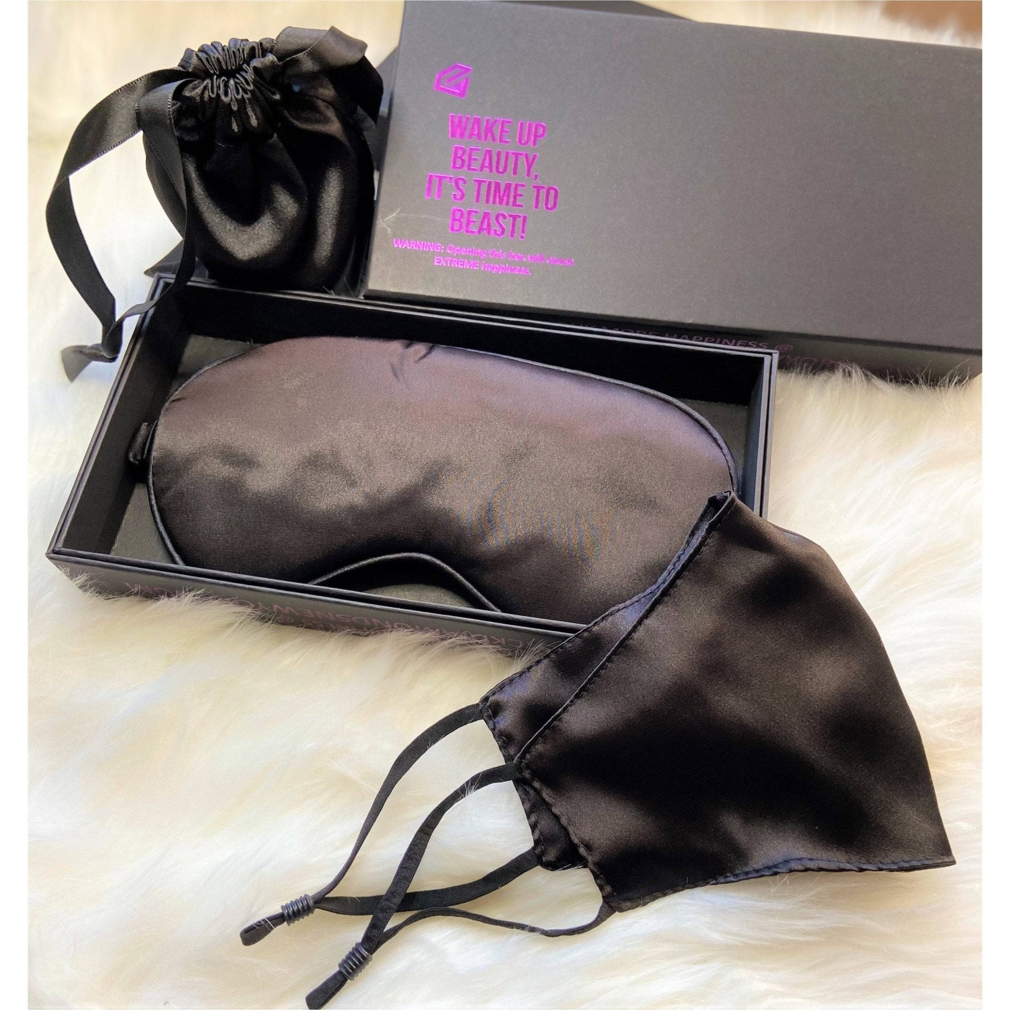 Black Silk Sleep Mask & Face Mask Luxe Gift Set.