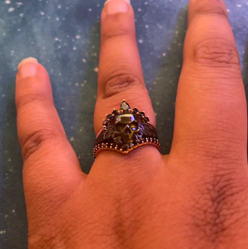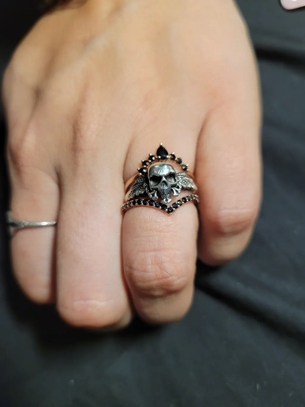 Rule with passion and power wearing the My Queen Gothic Skull Ring Set, a striking blend of love and rebellion. Handcrafted for gothic brides and alternative couples, this unique engagement and wedding ring set symbolizes loyalty, strength, and individuality. Perfect for those who crave punk elegance and dark romance, this skull bridal jewelry makes a bold proposal ring gift that celebrates a love like no other.