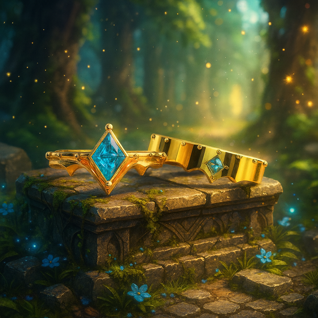 Complete your look with the Marksman Ring Set, inspired by your favorite video game character and crafted for strength, precision, and love. Featuring a custom elongated princess-cut stone set in a durable studded band, this unisex gamer ring symbolizes power, protection, and devotion—the perfect alternative engagement or couples ring for true champions.