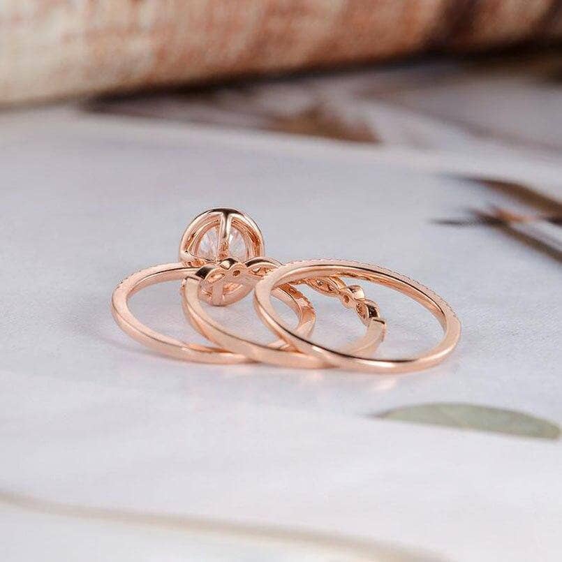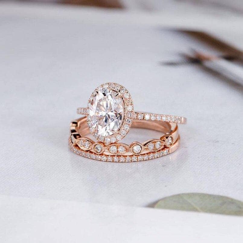14k Rose Gold 1.5ct Oval-Cut Diamond Halo Engagement Ring Set