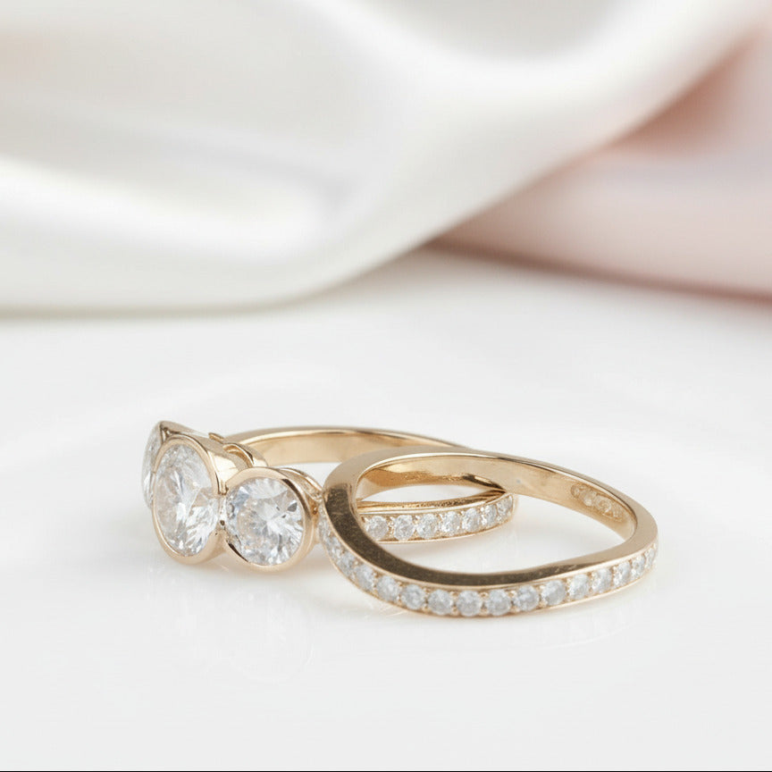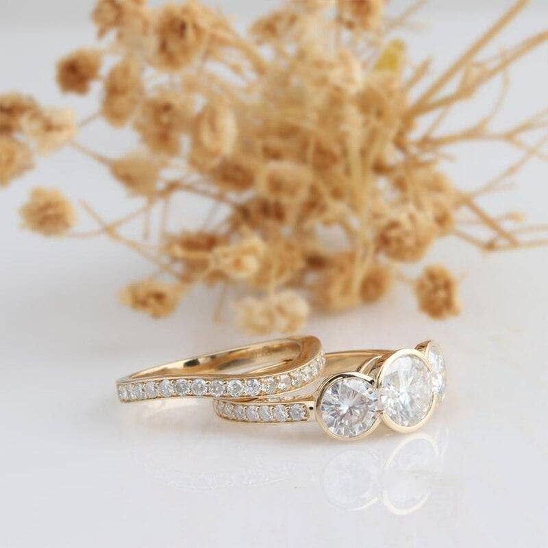 14k Rose Gold 3.1ct Diamond Three Stone Engagement Ring Set