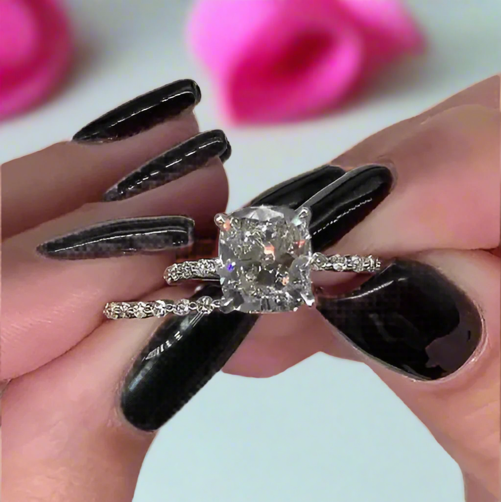 2.0 Carat Cushion Cut Diamond Ring Set