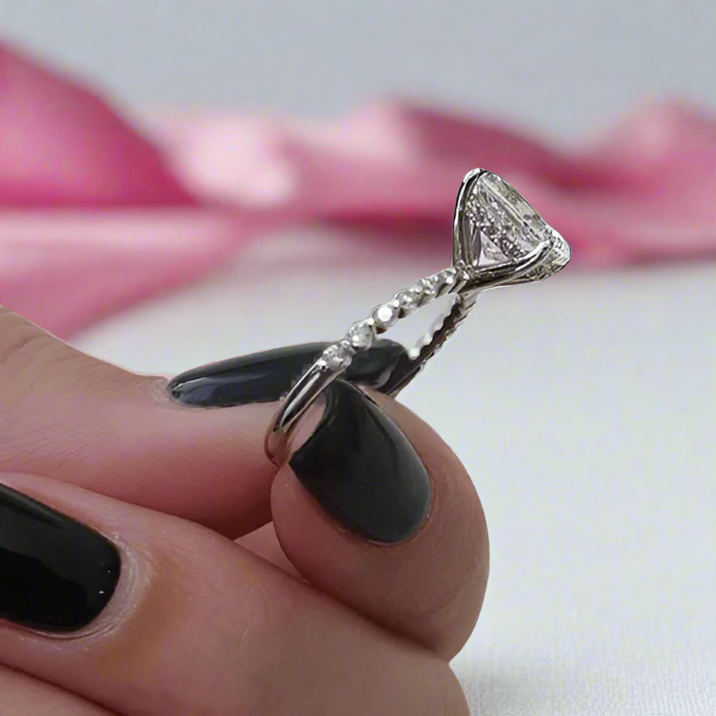 Please note that stone colors may vary slightly depending on the cut, size, stone carat, and type of stones/diamonds being used (e.g., Simulated Diamonds like Sona, Sapphires, Diamond Alternative, and Created Diamonds have more saturated hues compared to moissanite, lab diamonds, natural diamonds, and other gemstones). Please contact our team for more info.