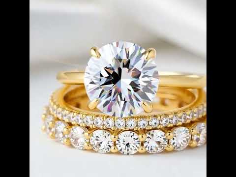Yellow Gold Round Cut 3PC Wedding Ring Set
